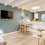 Een ingerichte kitchenette van Studio Luxe 31 Zandvoort met gratis parkeerplaats villa is uitgerust met een waterkoker, een koelkast en keukengerei. Gasten kunnen genieten van de Nederlandse keuken keuken in Anytyme De Oude Halt, gesitueerd op 14 minuten loopafstand ervan. De luchthaven Schiphol bevindt zich op 30 km afstand, terwijl de treinhalte Zandvoort niet ver van de 1-badkamer villa.